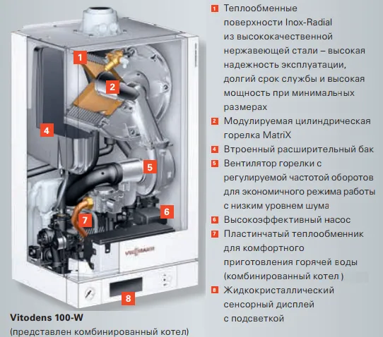 Среди достоинств немецкого газового котла Viessmann Vitodens можно выделить: