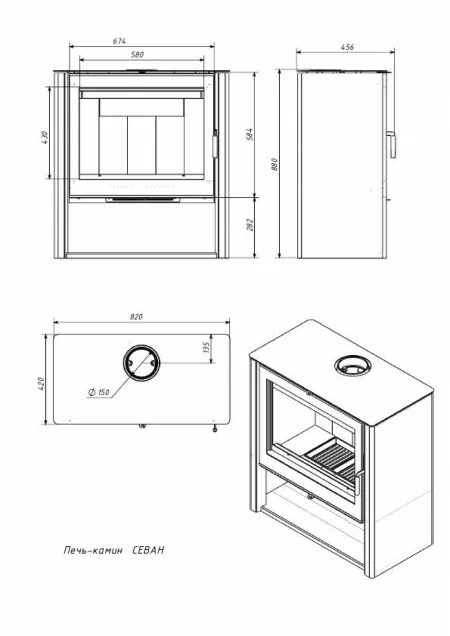- Дверца топки: Оснащена термостойким панорамным стеклом, рассчитанным на воздействие температур до 750 °C.