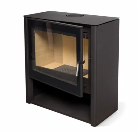 Пристенная печь с оригинальным и лаконичным дизайном. Большая плоская топочная дверка. Идеально подходит для обогрева помещения, выполненного в современной стилистике площадью 45-90 м2. Размер поленьев 30 – 60 см.