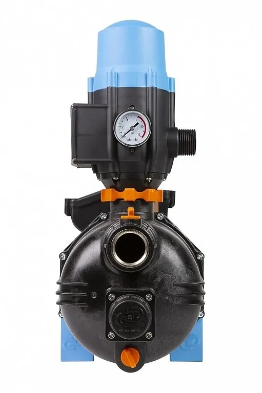 Уникальная разработка - насос-автомат «ДЖАМБО» Комфорт комплектуется встроенным регулирующим клапаном, который стабилизирует напор в водопроводной магистрали при изменении расхода воды. Пользователь больше не столкнется с проблемой изменения напора воды при одновременном использовании нескольких кранов. Предназначен для подачи воды из колодцев, неглубоких скважин, открытых водоемов, а также для повышения давления в сетях центрального водоснабжения. Создает комфортные условия пользования водой при пониженном давлении в трубопроводе и стабилизирует напор воды в системе водоснабжения при изменениях параметров потребления. Для управления работой насоса применяется блок автоматики, контролирующий наличие потока воды и защищающий насос от работы по «сухому ходу»