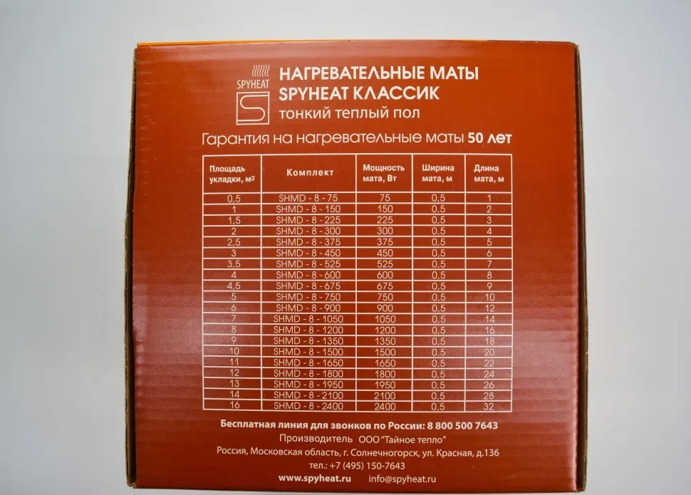 Комплектация: Нагревательный мат, гофрированная трубка для термодатчика (2 м) с заглушкой, руководство пользователя и гарантийный талон.